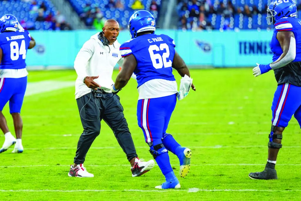 Merritt, affectionately known as “Big John,” dominated and revolutionized the game of football during his coaching career, compiling a record of 172-33-7 at TSU and 232-65-11 overall. Merritt’s signature cigar smoke after wins is still remembered by his former players and the Big Blue Nation.